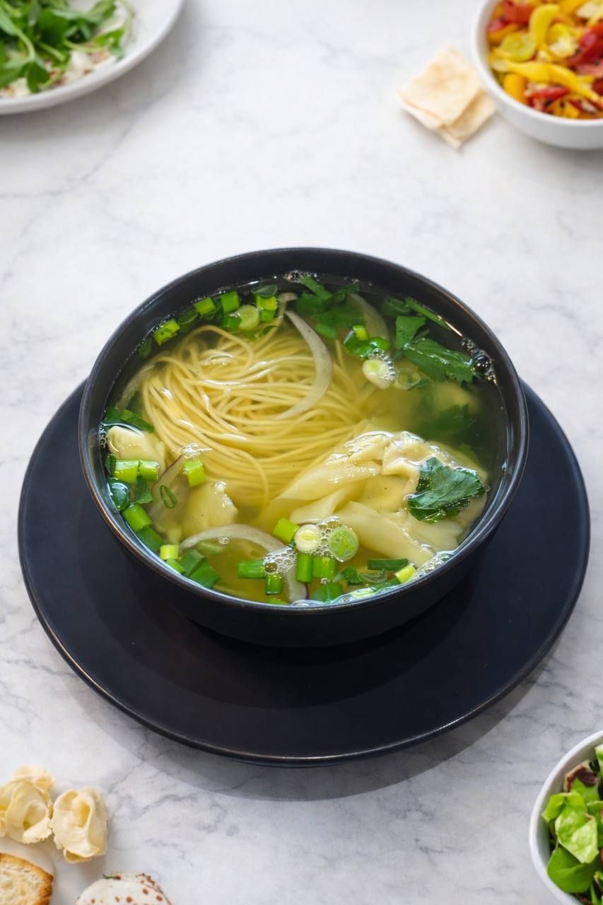 Bulion z pierożkami mięsnymi i makaronem jajecznym -